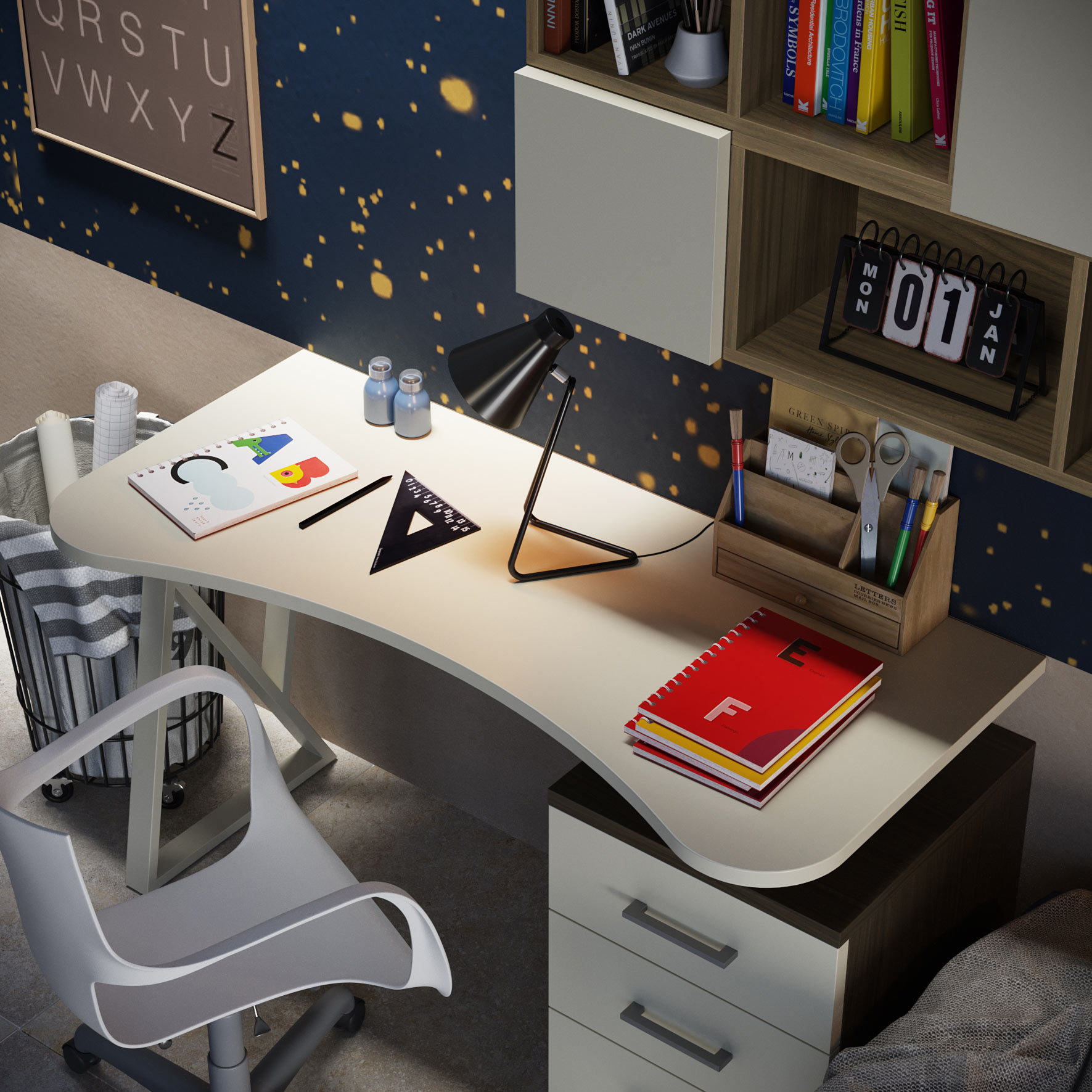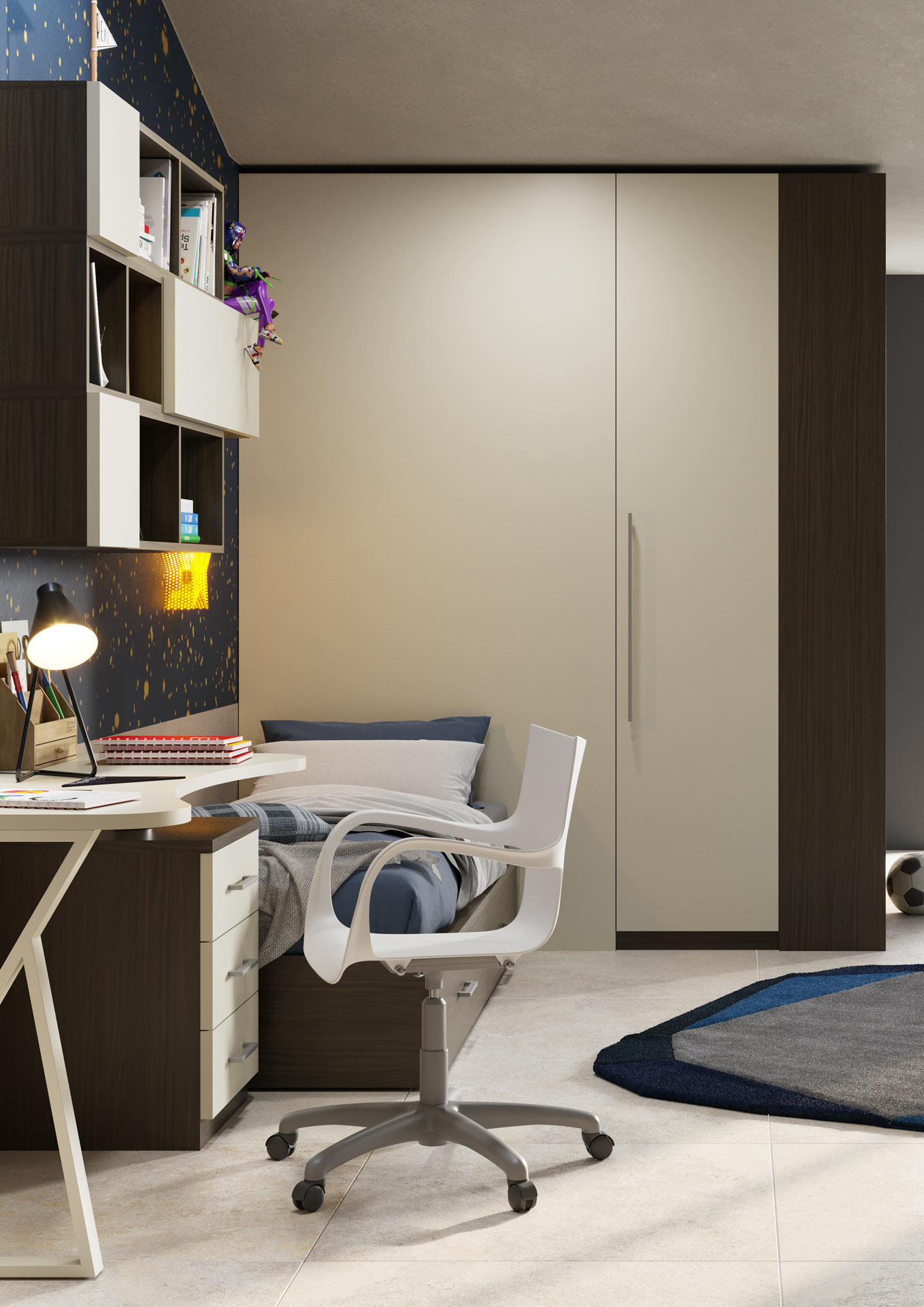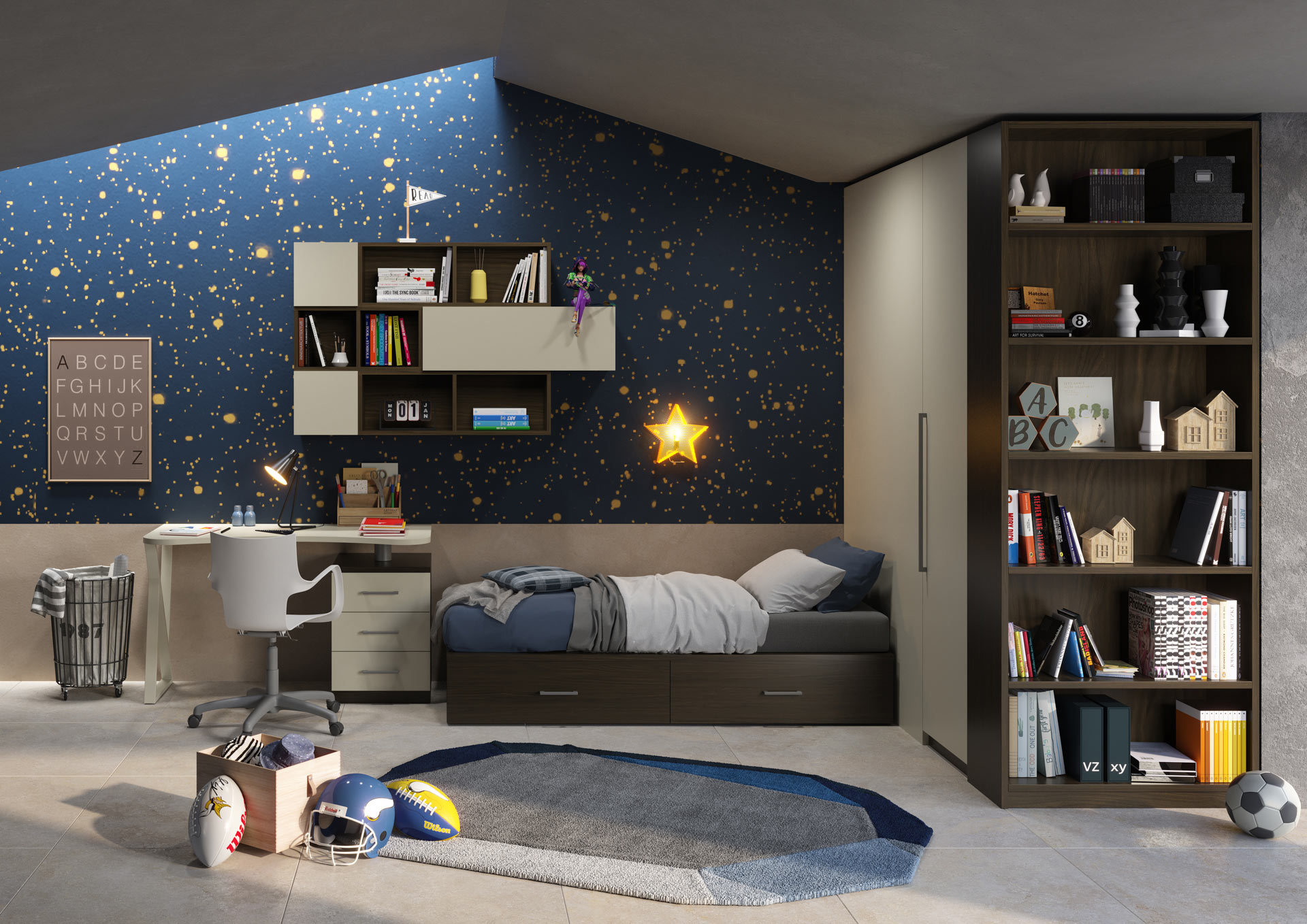 C > 1306 Cabina super da 150 con libreria terminale Base letto con cassettoni Scrivania smart con gamba piramide Noce Borgogna CORDA