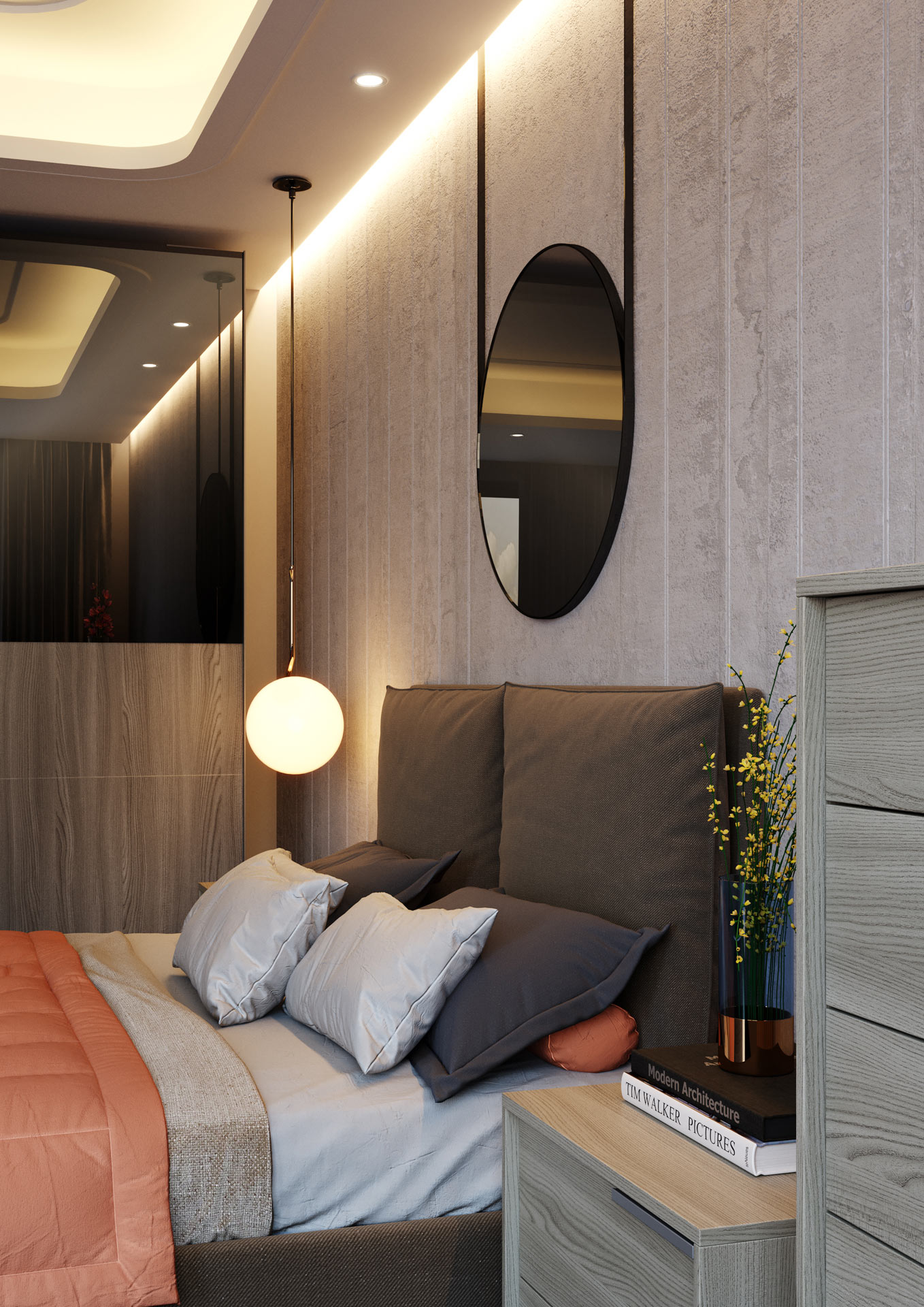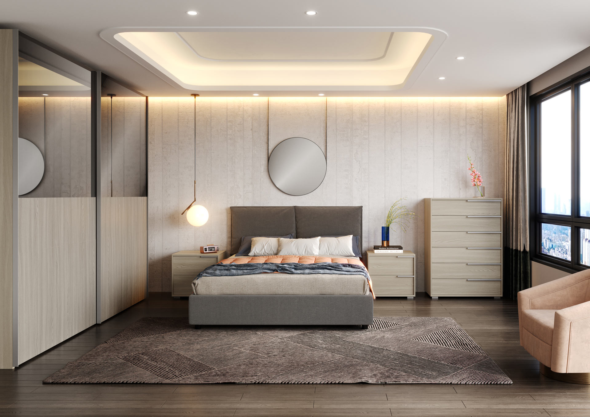C > 1418 Armadiatura 2 ante scorrevoli big con ante manhattan specchi fumé Letto prestige Settimino e comodini lux Olmo