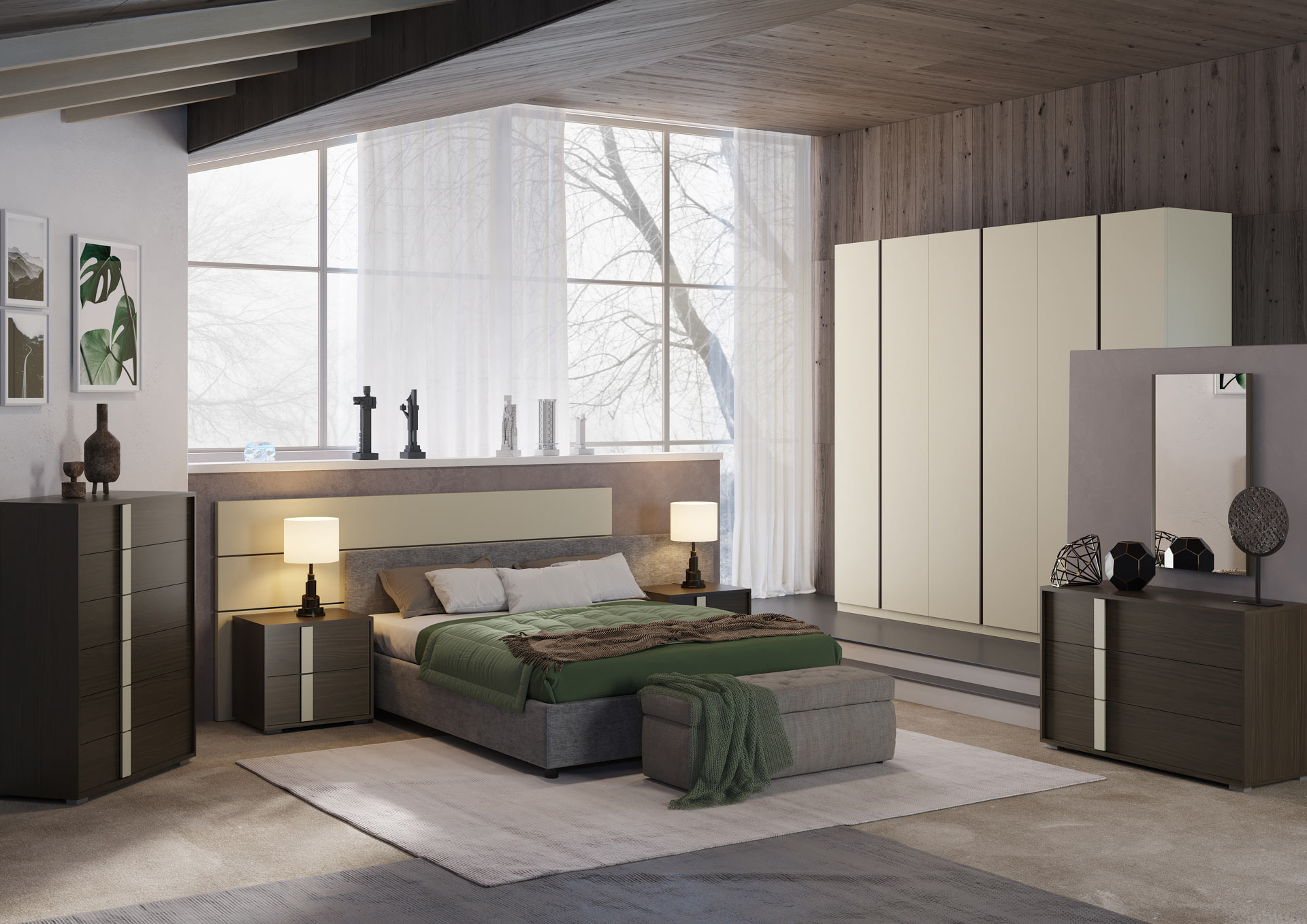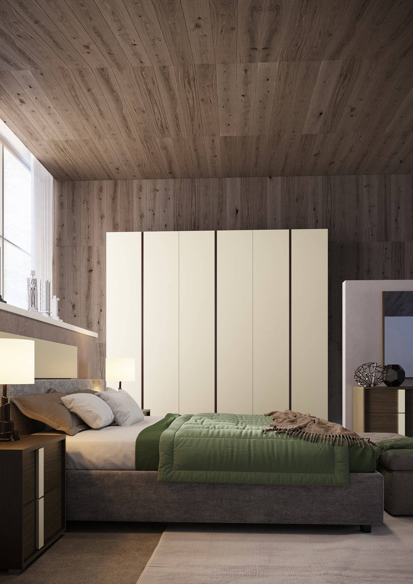 C > 1432 Armadiatura 6 ante con maniglie a gola Comò e comodini settimino mito Letto treno imbottito con contenitore L2870 / H1020 / P2000 CORDA Noce Borgogna