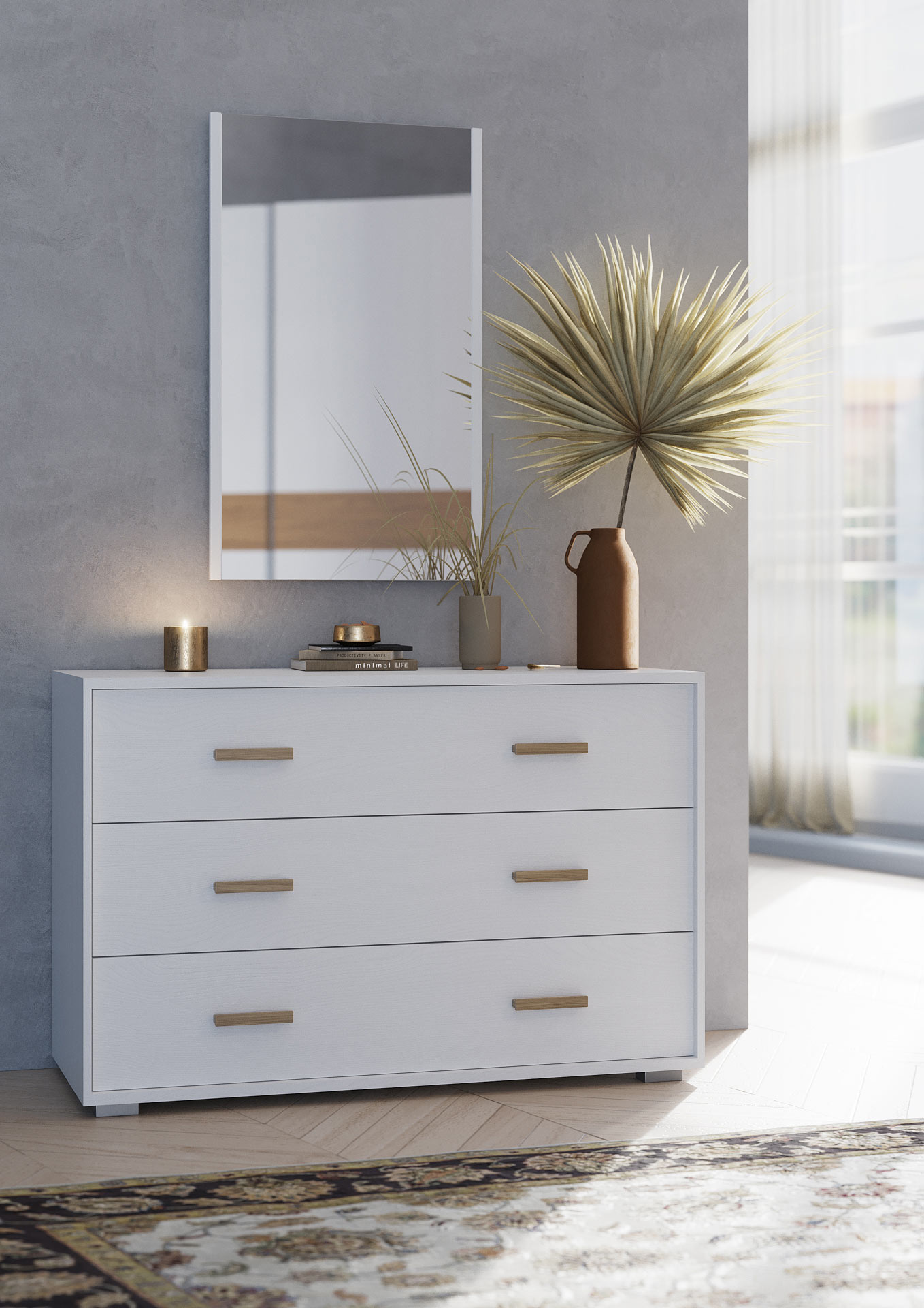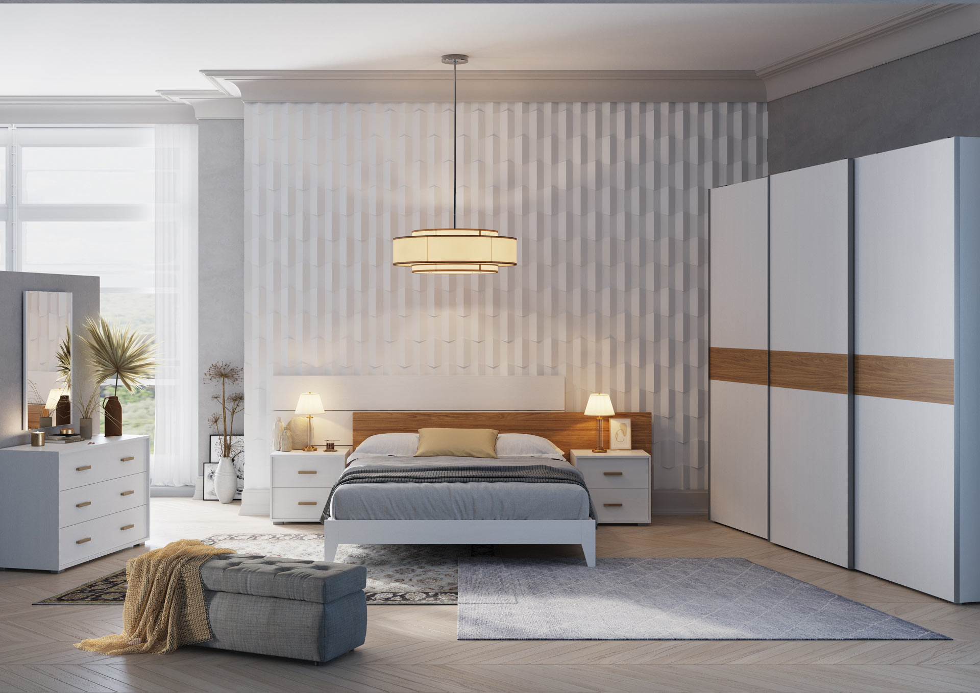 C > 1446 Armadio 3 ante scorrevoli city Comò e comodini basic Letto trend con giroletto lego L2870 / H1020 / P2000 Bianco Frassino Noce Tabacco