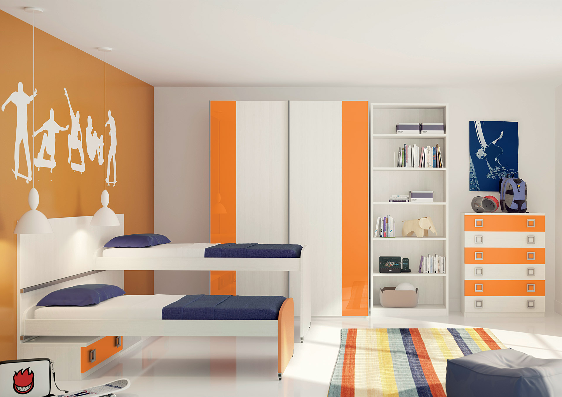 Comp 494 Armadio scorrevole con vetri laccati Boisere con letti scorrevoli Settimino “big” ARANCIO Bianco Frassino