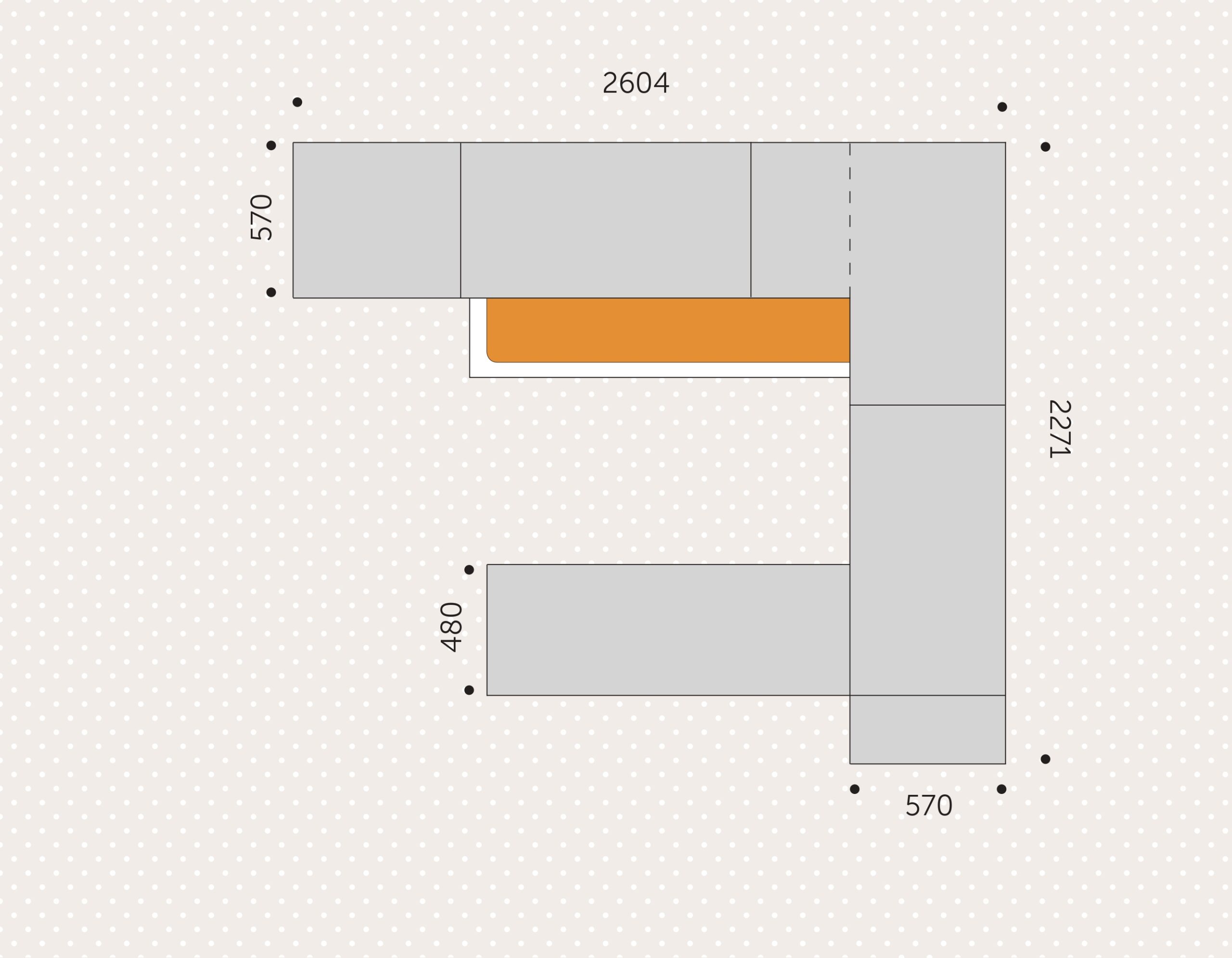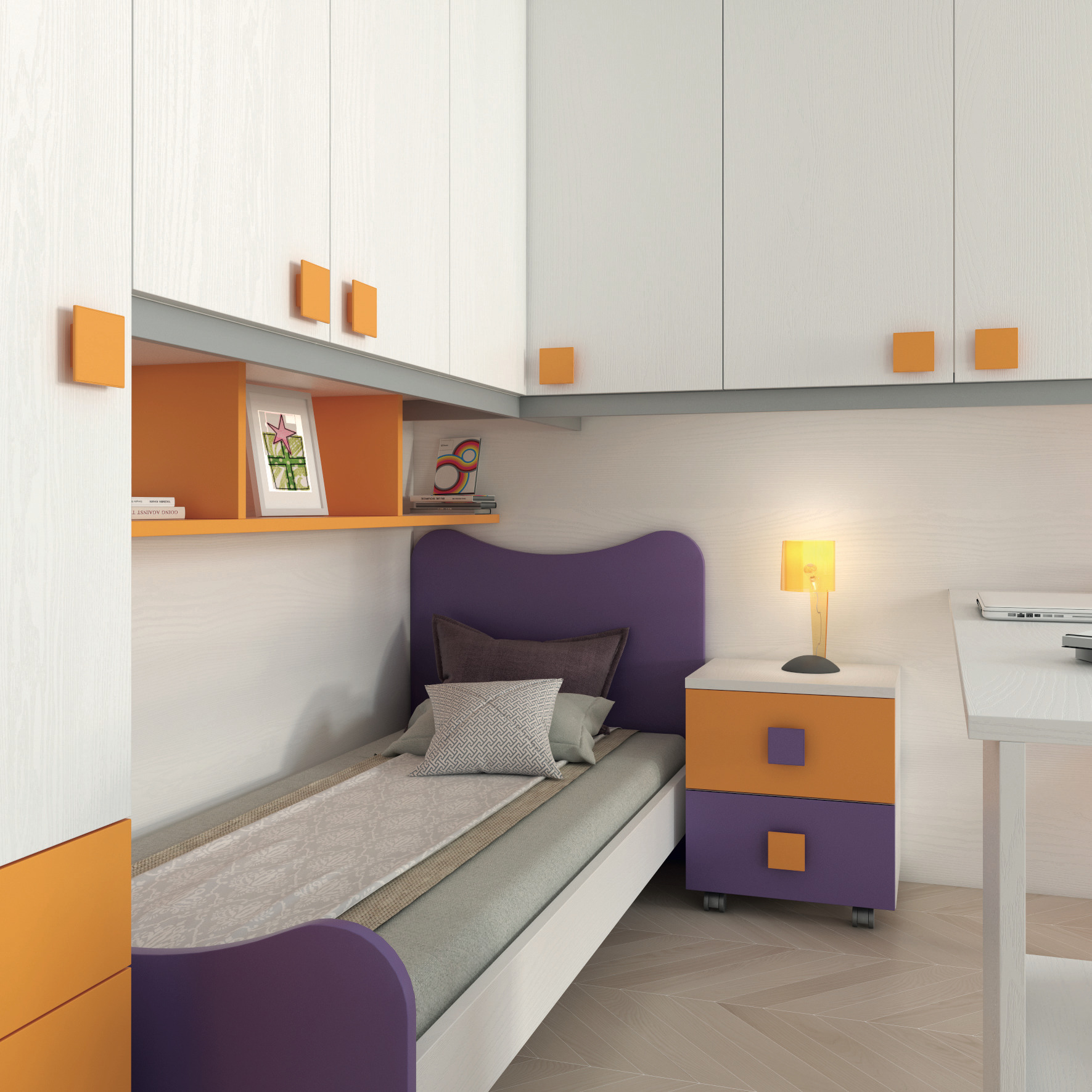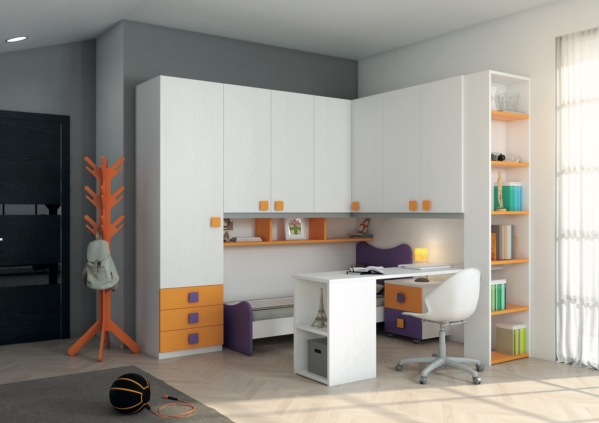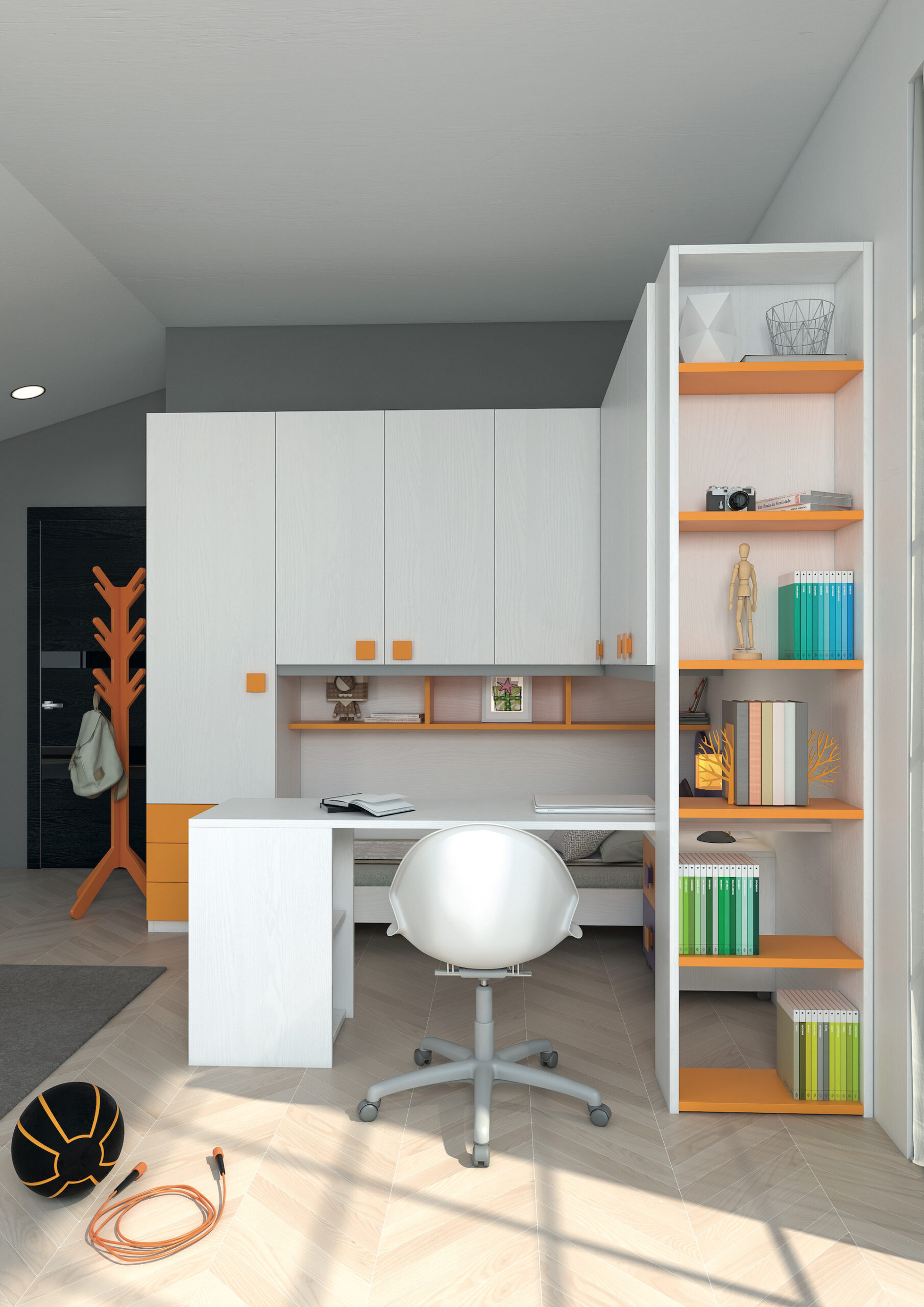 Comp 640 Ponte ad angolo con libreria terminale Scrivania con fianco a giorno Bianco Frassino ARANCIO MALVA